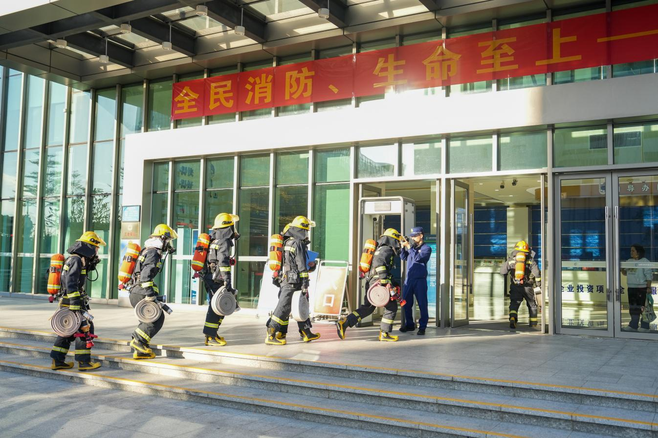 汕尾市市民服務(wù)廣場(chǎng)開(kāi)展2025年消防應(yīng)急演練